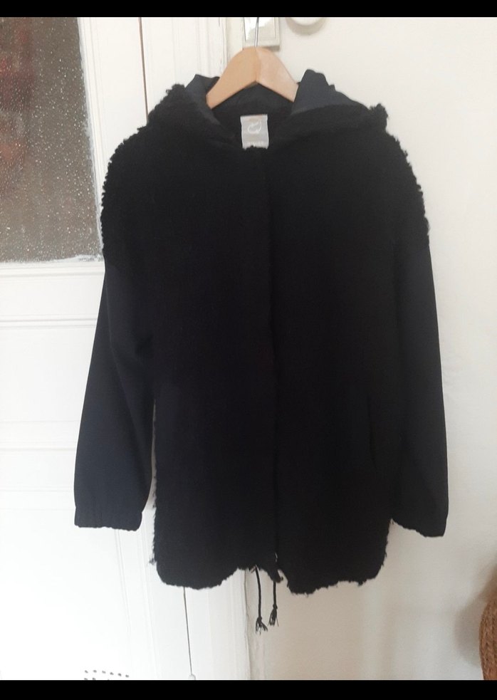 kapüşonlu ve uzun kolludur, bol kesimdir. Tüylü detaylara ve yumuşak, sıcak bir dokuya sahiptir, günlük kullanım için uygundur.