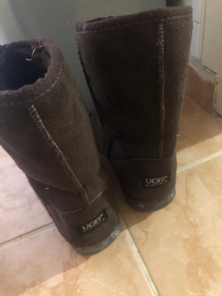 Orjinal Ugg Kadin Bot Kahverengi süet kadın botlar, wedge topuklu ve tokalı detaylı, rahat günlük kullanım için uygundur. Trendy gündelik stil için ideal. Ufak tefek lekeler var ama silince cikar rahatlikla