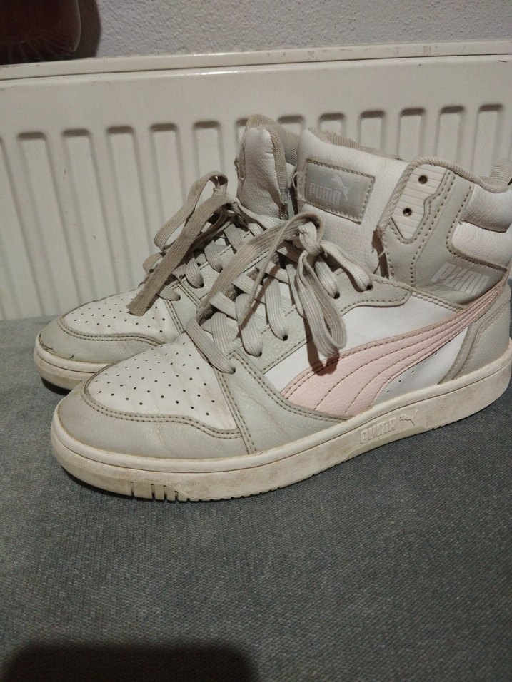 Beyaz ve pastel pembe tonlarında, bağcıklı ve kauçuk tabanlı wedge spor ayakkabı. Rahat ve şık, spor sokak stiline uygun. bir sezon kullanıldı orjinal