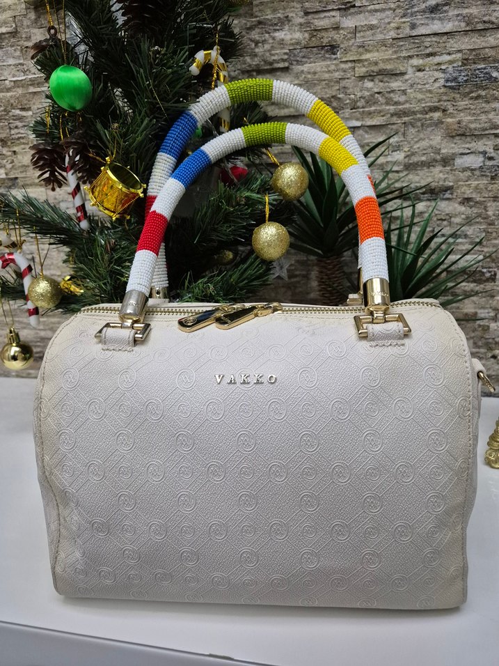orjinal vakko marka krem renkli kulpları boncuklu ve bu sayede soyulma deformasyon olmuyor silince kulplarını tertemiz de oluyor , 25 cm lik çanta içi temiz zaten çok az kullandım kenarlarında soyulma yıpranma yok sadece metallerinde çok dikkat çekmeyen renk atmaları var birde köşe kenar kısımları biraz sararmış uzun kulpu var barkod yazıyor istediğiniz yerde teyit edebilirsiniz kesinlikle orjinaldir kartını torbasını kaybetmişim ama görseldeki orjinal toz torbası ile göndereceğim fiyatta indirim düşünmüyorum basit markasız çantalar bile bu fiyatlarda artık