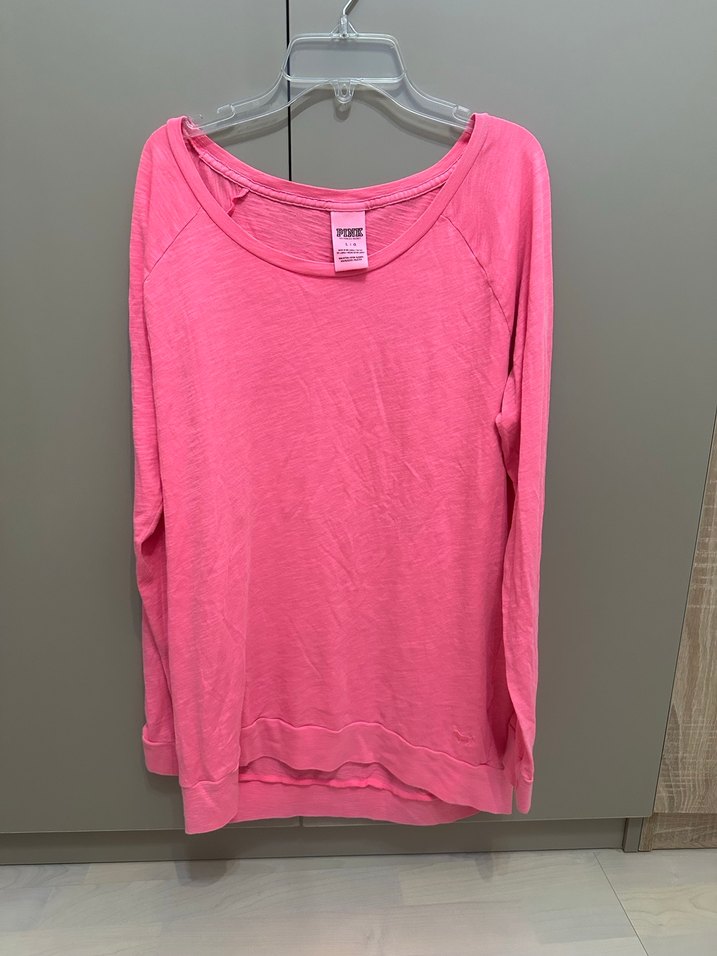 Amerika’dan alınmış, %100 orijinal Victoria’s Secret PINK • Beden: L – rahat / hafif oversize duruş • Renk: canlı pembe • Kumaş: %60 pamuk, %40 polyester – ince, yumuşak, tüylenme yapmayan yapı • Geniş yakalı, rahat kesim, evde / sporda / günlük kullanıma uygun • Genel durumu çok iyi, sadece normal yıkama izleri olabilir, göze batan leke/defosu yok