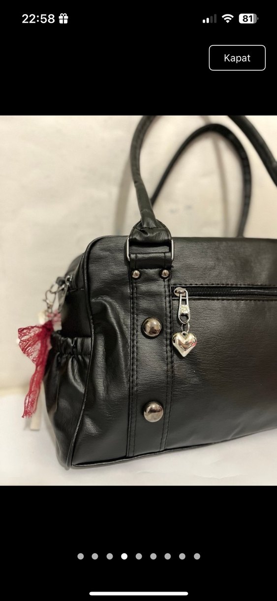Orijinal lolita japon-kore okul çantası tarzı siyah suni deri çanta. Japon okul çantası görünümünde, yeni ve etiketli. Uzun kulpu vardır. Boyut yaklaşık 30 × 23 cm.ben de laptop çantası olarak kullanıyorum görsele ekledim Ev atölyesinde üretilir, mağazada satılı yoktur toplu alım için yazabilirsiniz Görseldeki anahtarlıklar ek ücretlidir, isteyenler yorumlara yazsın yeni için alıcam yazmanız yeterli