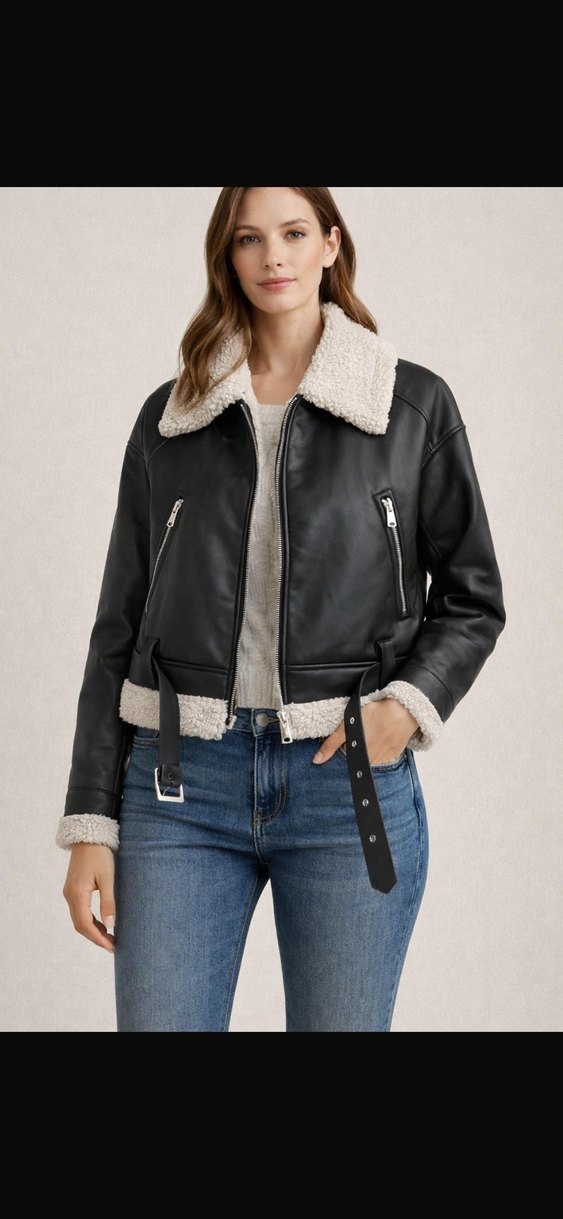 Sıcacık tutan şahane Tokalı kayışlı, siyah deri biker ceket, yumuşak astarlı ve normal midi uzunlukta, günlük kullanıma uygun.