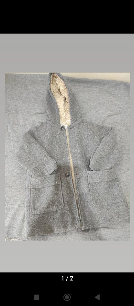 kullanilmistir Gri renkte,kalın kürklü iç detaylı, notlu yakalı ve bol kesim erkek çocuk kabanı. Büyük ön cepleriyle sade ve rahat bir tasarıma sahip. 4/5 yas iki düğmesi eksiktir