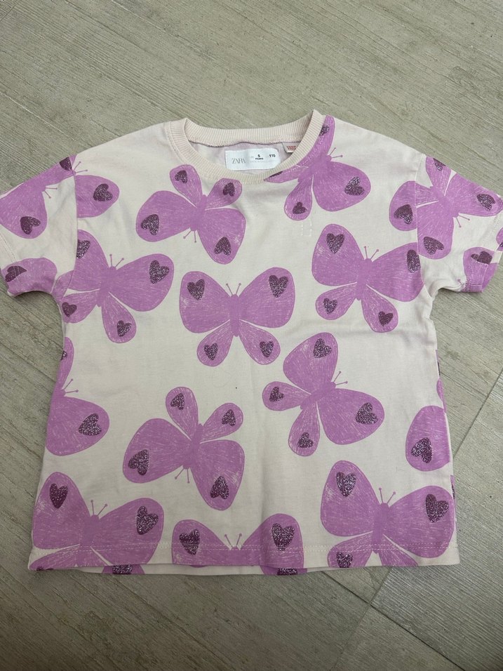 Orjinal zara Kız Çocuk Pembe Kelebek Baskılı Tişört
