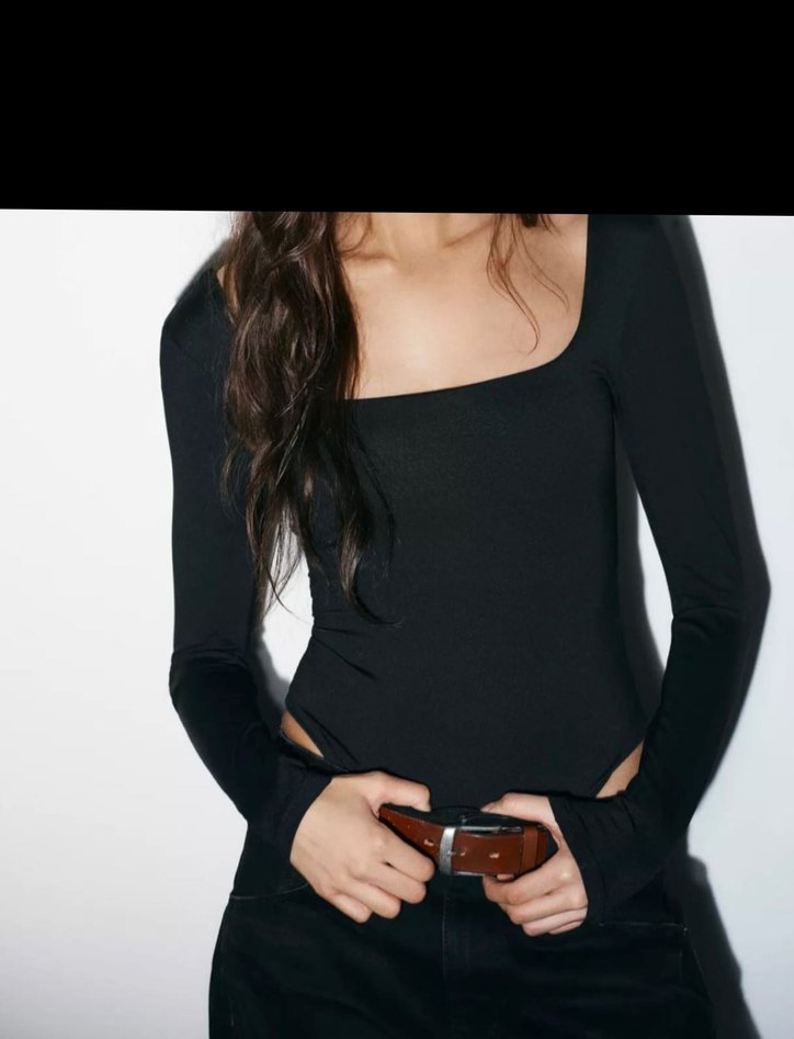 V yakalı, uzun kollu, siyah poliamid body Minimalist ve cesur sokak stili sunar, günlük kullanıma uygundur.