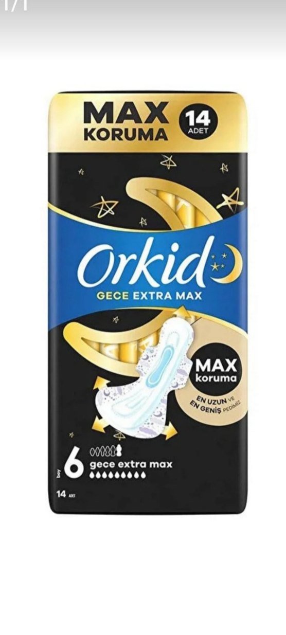 Orkid Gece Extra Max kadın pedleri, uzun ve geniş yapısıyla maksimum koruma sağlar. 14 adet ped içerir.