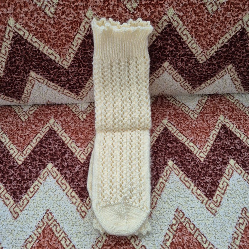 Geleneksel örme krem renk çorap, rahat kullanım için ince dokulu ve desenli olarak tasarlanmıştır. 36-37 uyumlu.Çeyizimin değerli bir parçası.
