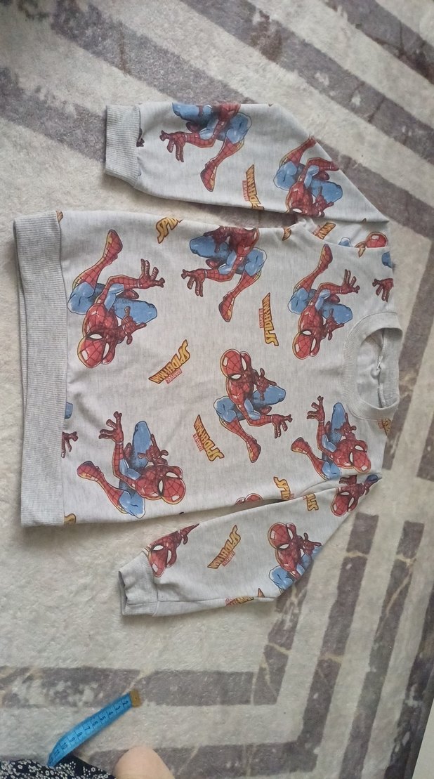 Örme, uzun kollu ve yuvarlak yaka gri sweatshirt, rahat kesim ve Örümcek Adam baskısıyla dikkat çeker. Yumuşak, sıcak dokusu günlük kullanım için uygundur.lekedı söküğü vs.yoktur