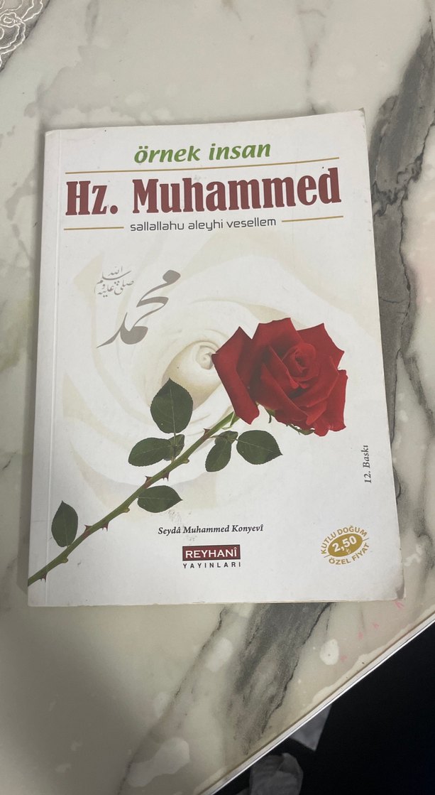 Seyda Muhammed Konyel'in yazdığı ve Reyhani tarafından yayımlanan 'Örnek İnsan Hz. Muhammed' kitabı, Peygamberimizin (s.a.v.) örnek hayatını anlatıyor. Kapakta kırmızı bir gül bulunuyor.