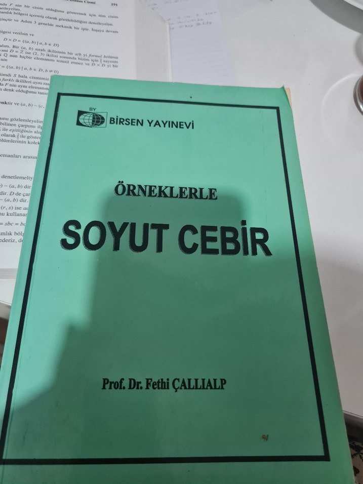 Prof. Dr. Fethi Çallıalp imzalı, Birsen Yayınevi tarafından yayımlanan örneklerle soyut cebir konularını içeren bir ders kitabı. kurşun kalemle bir ili yerde var.
