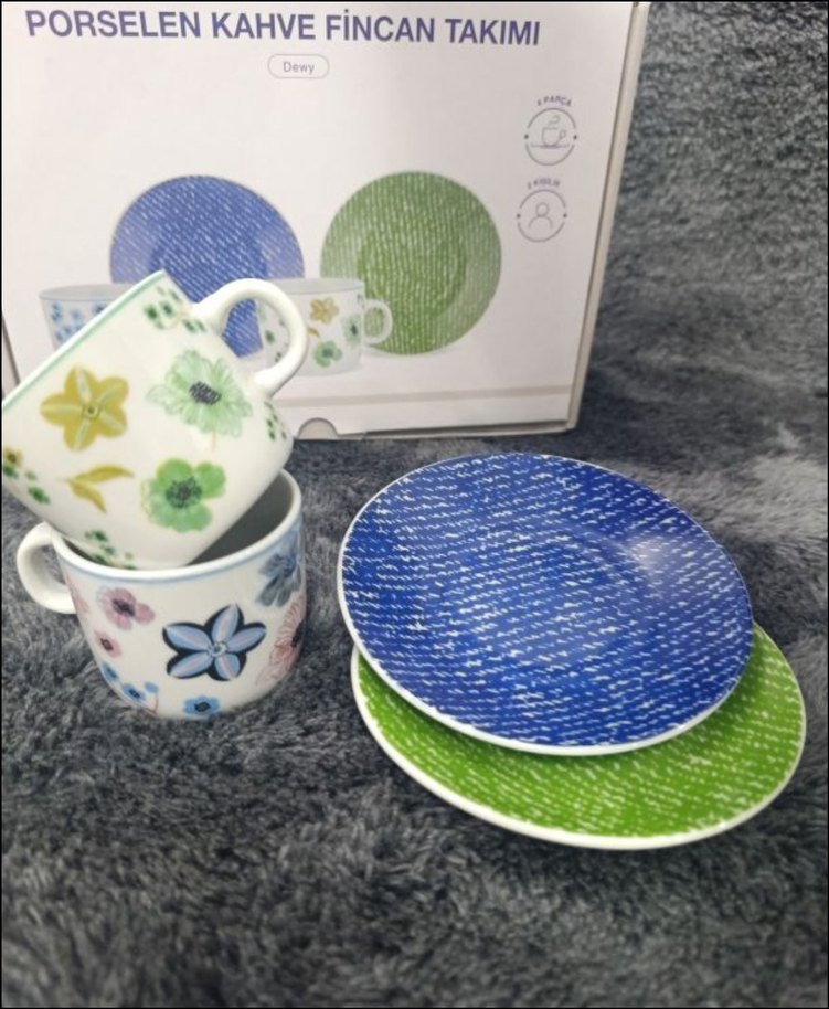 ürün 4 parçadır. kapalı kutulu gonderilicektir. 2 fincan -2 tabak