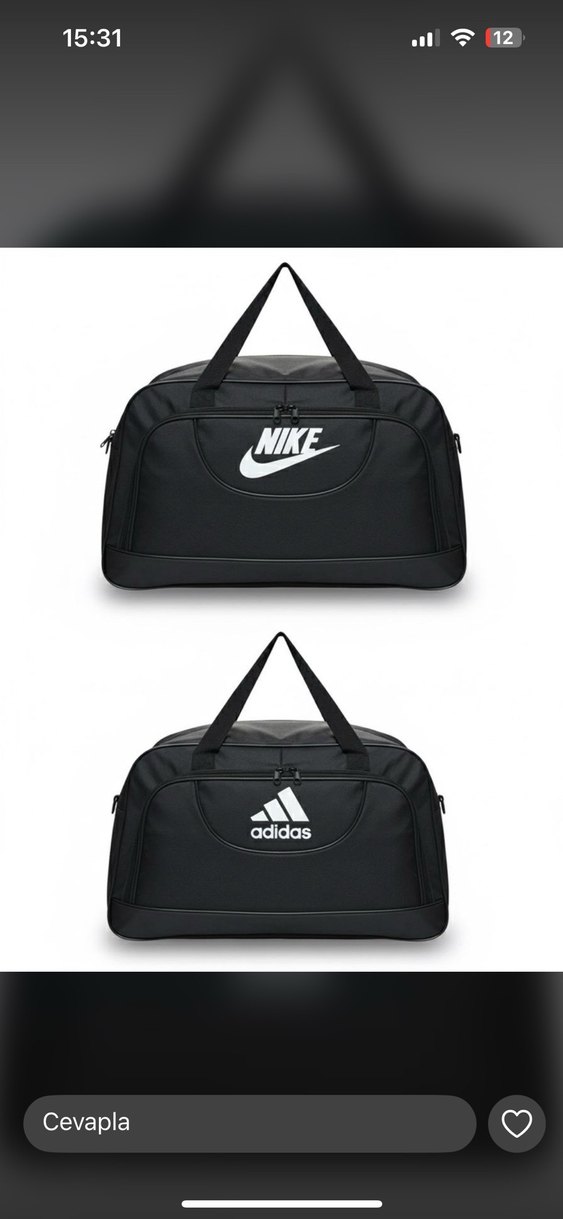 Fermuarlı, siyah erkek spor çantası. Üzerinde Nike ve Adidas baskıları bulunur. Düz ve sade tasarımlı, koyu renkli. ✅orijinal değildir ✅60 cm ✅ilan açtırıp sipariş oluşturabilirsiniz