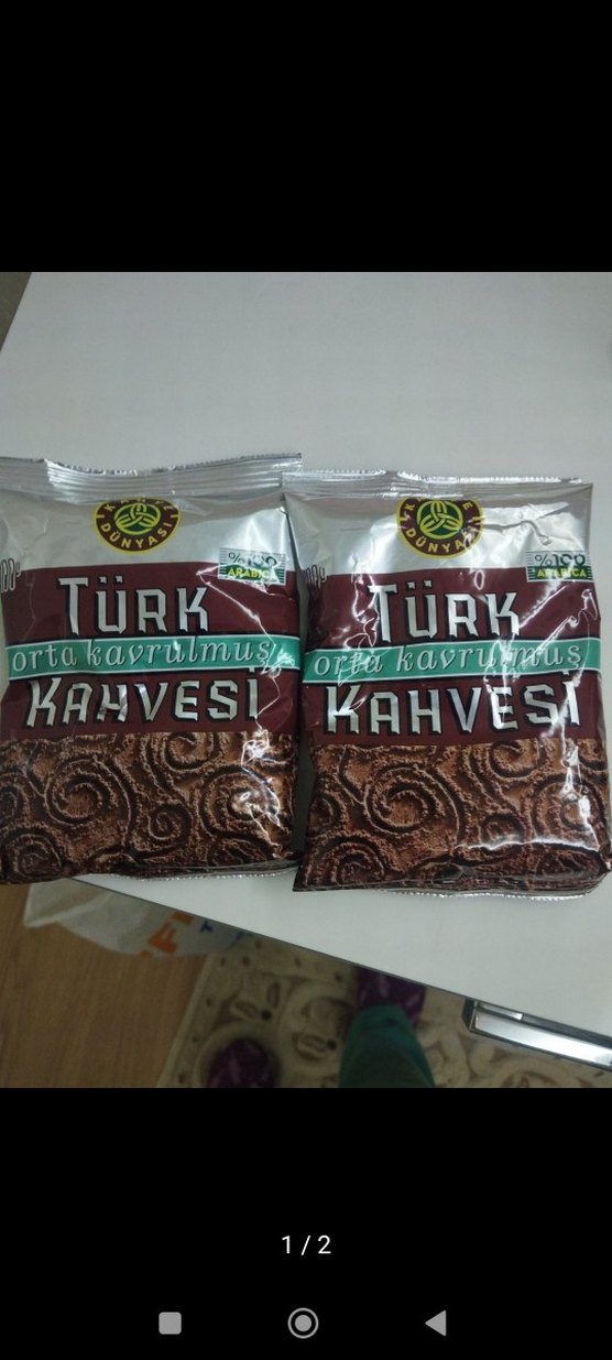 İki paket orta kavrulmuş Türk kahvesi, zengin aroması ve geleneksel lezzetiyle sunulmaktadır. ☕