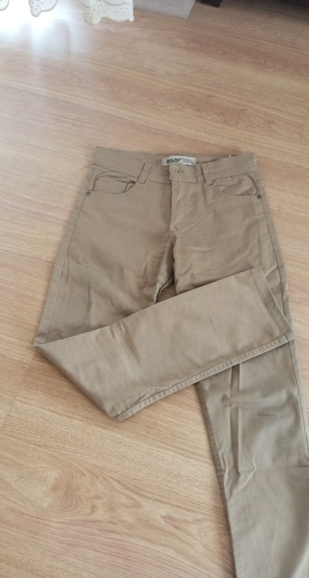 Bej renk, regular fit ve normal boyda okul pantolon. Düz desensiz, sentetik kumaştan üretilmiş, günlük rahat kullanıma uygun şık bir model.