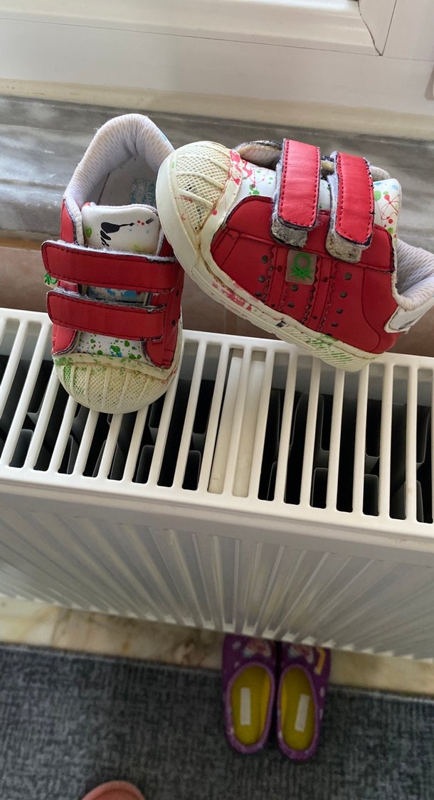 Kırmızı baskılı, cırt cırtlı ve kauçuk tabanlı renkli kız çocukları spor ayakkabısı, sokak modasına uygun. Sorunu yok ortapedik ilk adım yumuşak hafif ayakkabı 20 numara