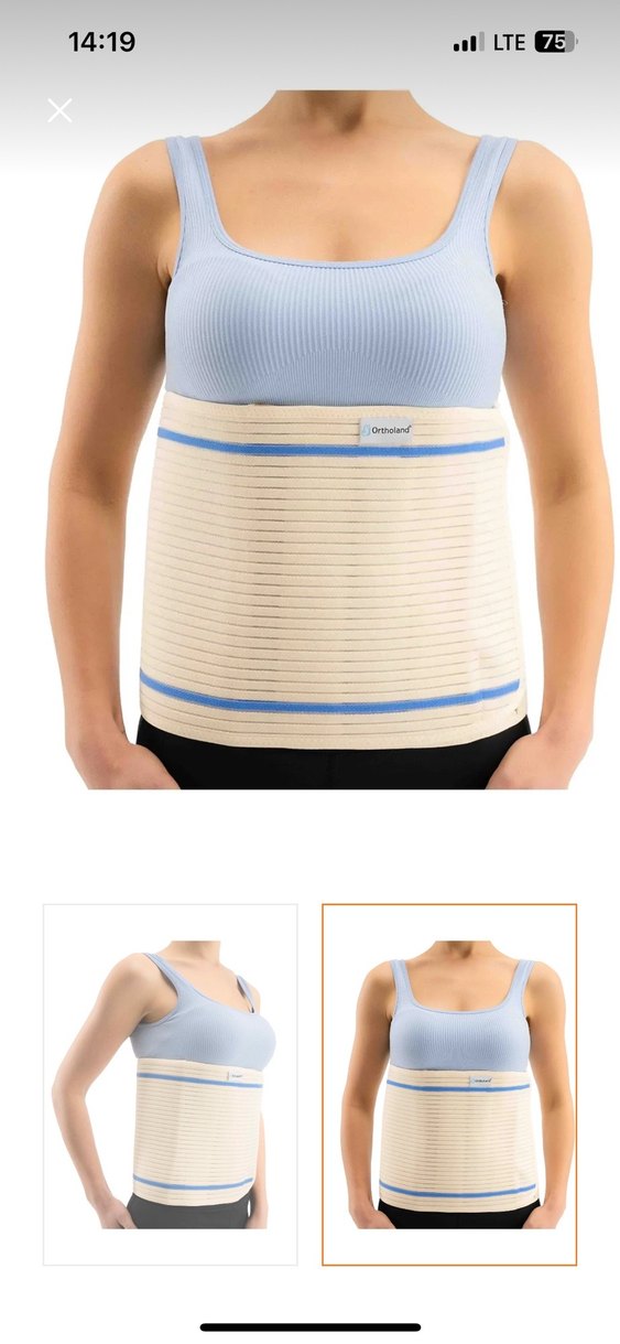 Ortoland markalı, göbek ve bel bölgesine destek sağlayan, normal boy ve hafif mavi detaylı korse. Doğum sonrası kullanım için rahat ve destekleyicidir.