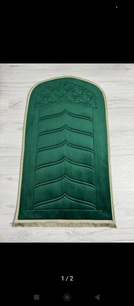 Diz ağrıtmayan deri tabanlı Lüx ortopedik seccade modelimiz Koyu yeşil renkte, nakışlı desenli klasik tarzda, yumuşak dokulu ve püsküllü kenarlara sahip