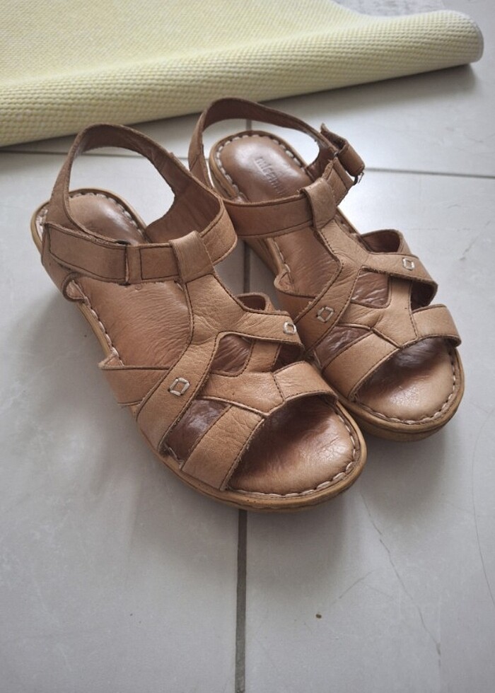 Doğumdan snra ayak bedenim büyüdüğü.içün giyemiyorum.İnanılmaz rahat, yumuşacık taban bir sandalet.3-4 cm yüksekliği var .marka temsilidir.