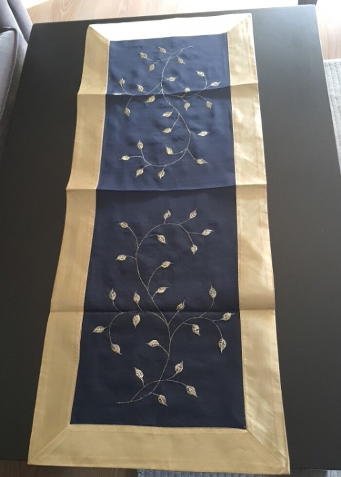 Lacivert kenarları sarı örtu takımı. 1 adet runner, 1 adet orta boyutta fiskos yada masa icin örtü, 2 adet kücük kare örtü, 12 adet ayrı vitrin örtüsü mevcut. Not: Örtüler 1 kere bile kullanılmadı. Çok beğenerek almıstım fakat mobilyaların rengine uymadıgı icin kullamadım. Fazlalık oldugu icin satıyorum