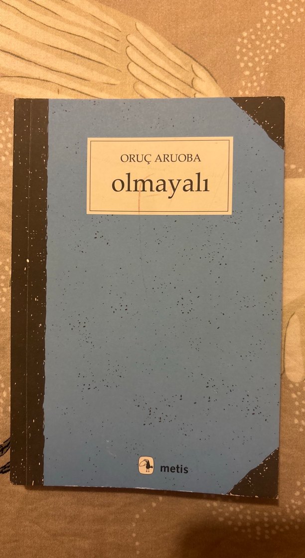 Oruç Aruoba'nın 'Olmayalı' adlı kitabı, Metis yayınevi tarafından basılmıştır. Mavi ve siyah sade kapak tasarımına sahiptir.