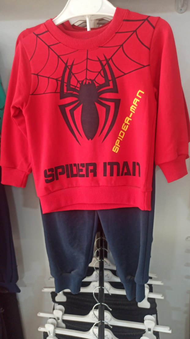 Kırmızı örümcek adam baskılı, bisiklet yaka ve fitted kesime sahip erkek çocuk eşofman takımı, yumuşak örme kumaştan üretilmiştir. Rahat ve renkli tasarım sunar. ️