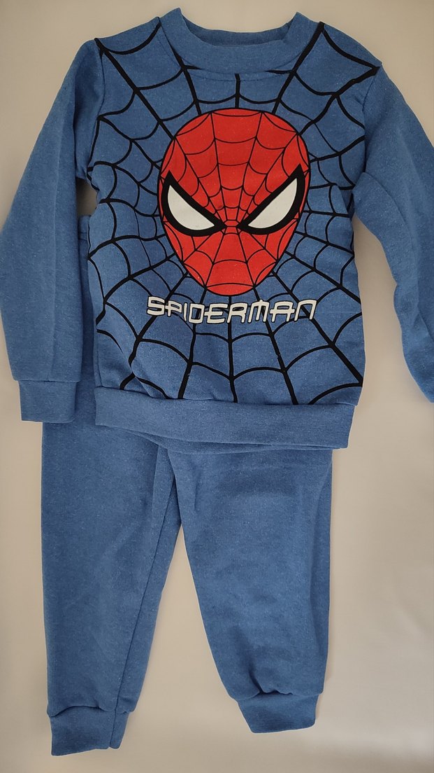 Örümcek Adam baskılı, fitted kesim erkek eşofman takımı. Yuvarlak yaka ve renkli baskı detaylıdır. ️ Kullanılmadı, etiketi yoktur.