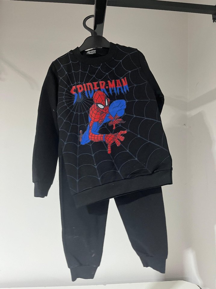 Örümcek Adam baskılı, örme yaka ve rahat kesimli siyah erkek çocuk eşofman takımı, yumuşak ve sıcak kumaştan üretilmiştir. ️