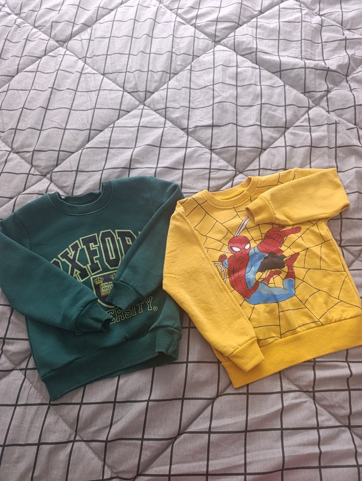 Sarı renkli, uzun kollu ve yuvarlak yakalı erkek çocuk sweatshirtü, jardonlu yumuşak kumaştan üretilmiş ve örümcek adam baskısına sahip. ️diğeri de aynı özellikte