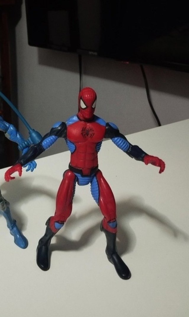 spiderman oyuncak. görüldüğü şekildedir. çizikler boya sökükleri mevcut olsa da yaşina göre iyi durumda