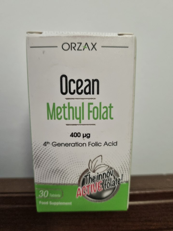 Orzax Ocean Methyl Folat, 4. nesil folik asit olarak 400 µg sağlar. 30 tablet içerir, günlük beslenmeye destek sunar. Az kullanılmış.