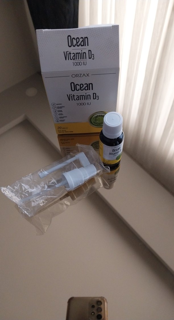 Orzax Ocean Vitamin D3 1000 IU serum, kolay kullanım için damlalık ile birlikte. Sıvı formda vitamin D desteği sağlar. açıldı ama kullanilmadi