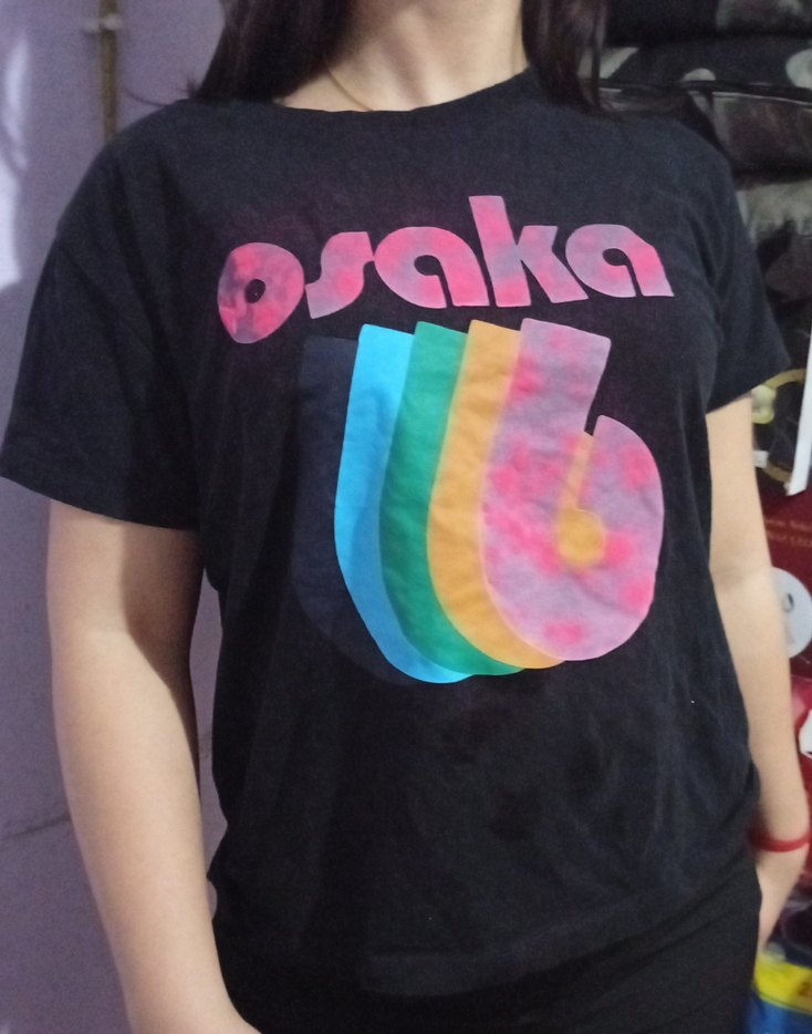 Siyah renkte, kısa kollu ve yuvarlak yakalı hamile tişörtü, renkli Osaka baskısına ve rahat kesime sahiptir. Midi boyda ve gündelik kullanıma uygundur.