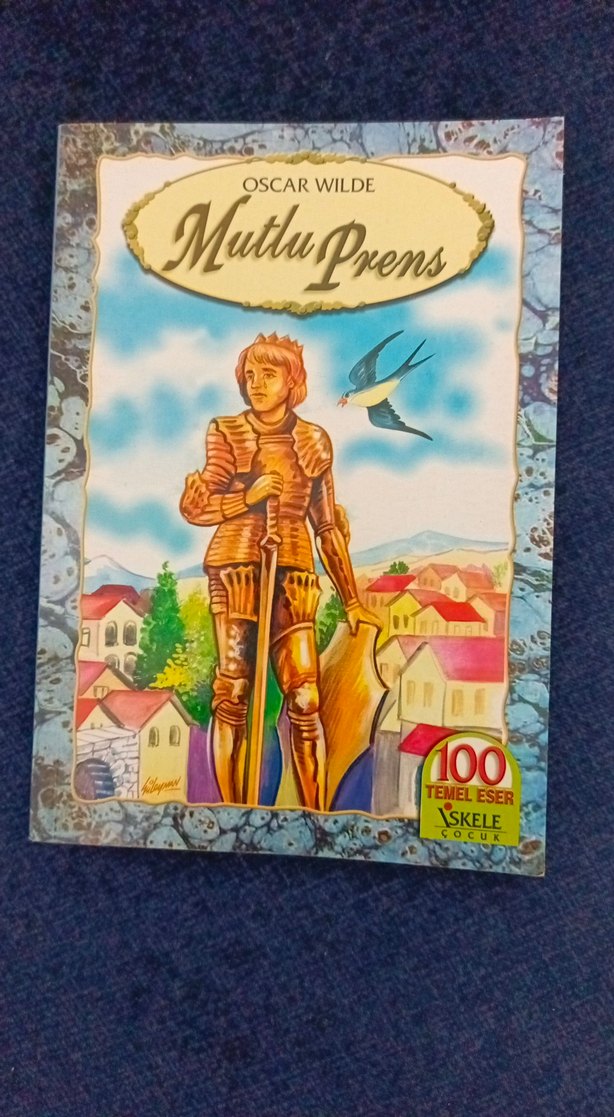 Oscar Wilde'in Mutlu Prens adlı şiir kitabı, kapakta prens heykeli ve kırlangıç resmiyle klasik bir hikaye sunuyor. İskele'nin 100 Temel Eser serisinden.