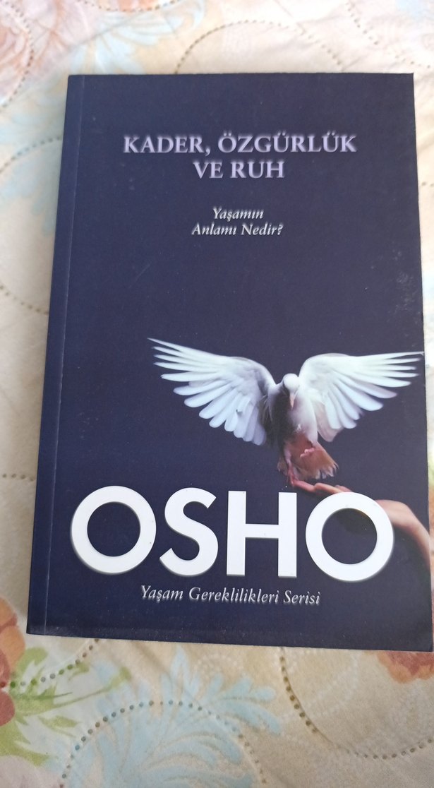 Osho'nun "Kader, Özgürlük ve Ruh" adlı kitabı, Yaşam Gereklilikleri Serisi kapsamında hayatın anlamını sorguluyor. Kapakta beyaz bir güvercin yer alıyor.