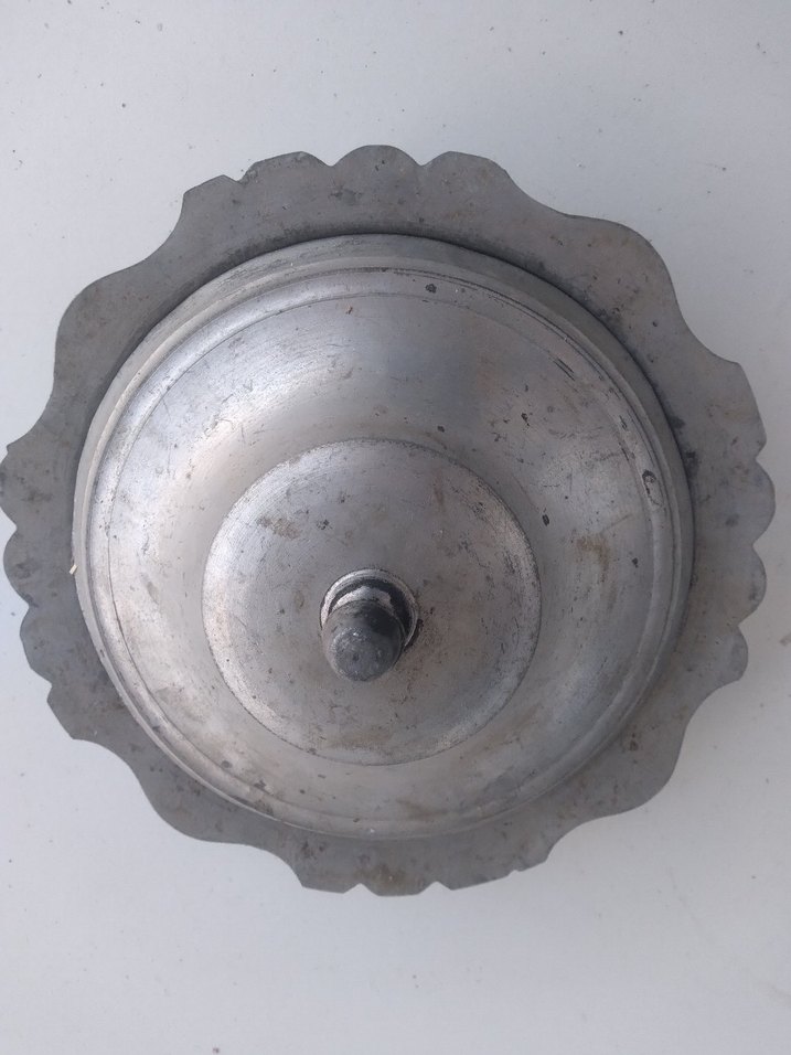 680 gram ağarlîğında 22 cm çapında bakir özelliği bozulmasın diye yıkanmadı bile rum evinden çıkmadır her hangi bir ezik kırık çatlak yoktur iade garantilidir
