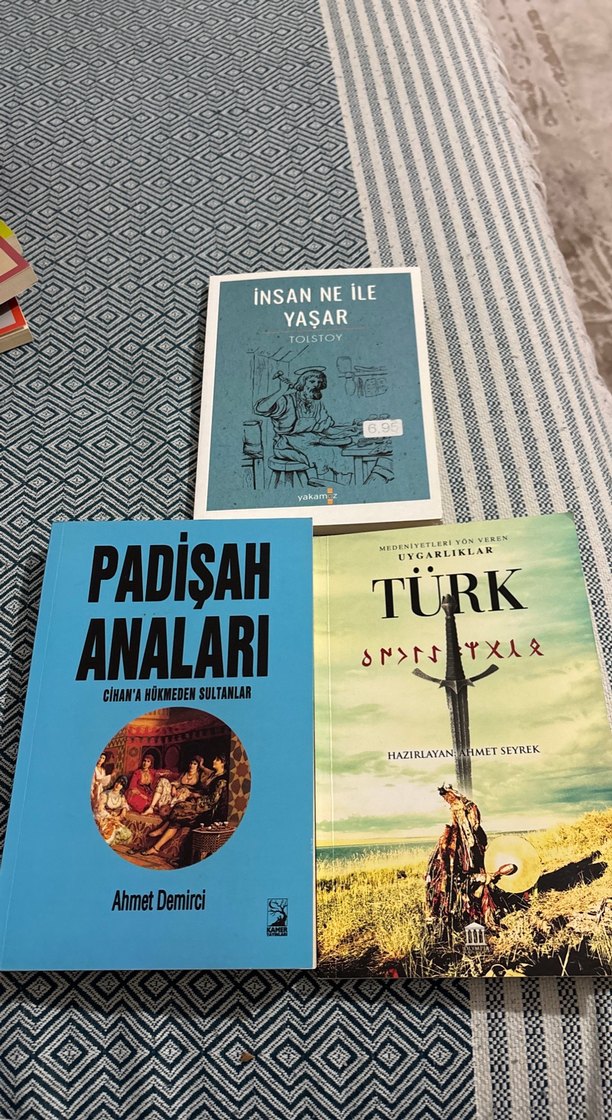 Ahmet Demirci'nin 'Padişah Analari', Tolstoy'un 'İnsan Ne İle Yaşar' ve 'Türk' kitaplarından oluşan Osmanlıca kitap seti.