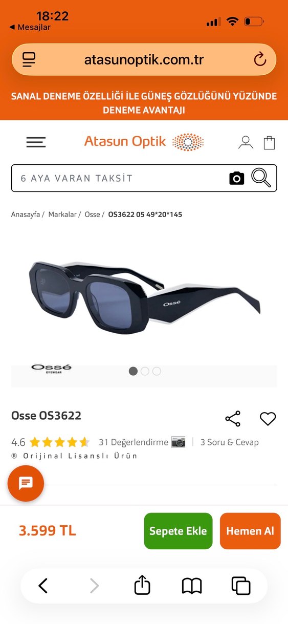 Osse OS3622, siyah parlak çerçevesiyle minimalist ve sokak modasına uygun kadın güneş gözlüğüdür. Özgün lisanslı, avant-garde ve trend belirleyici tasarım sunar. ( pazarlık payı vardır ) ücret : 2550 tl uyguna veriyorum.