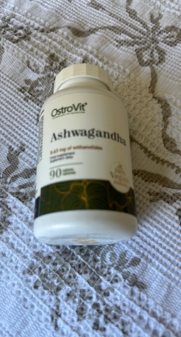 OstroVit Ashwagandha, 90 kapsül içerir ve her porsiyonda 5,43 mg withanolide sağlar.