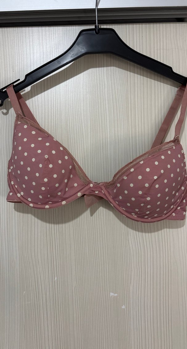 Pembe renkte, pastel tonlu puantiyeli ve bohem tarzda sütyen. Ayarlanabilir askıları ve rahat kesimi bulunur. Ocho markasına ait kilo aldığım için bedenim olmuyor 80 beden süngerli ama ekstra bir desteği yok