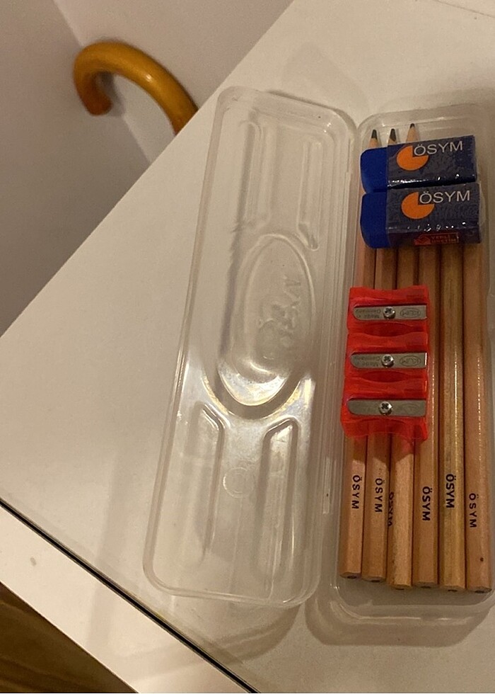 6 adet ösym kalemi, 3 adet kalemtıraş ve 2 adet silgi kutu içerisinde gönderilecektir. Aynı gün kargoda.
