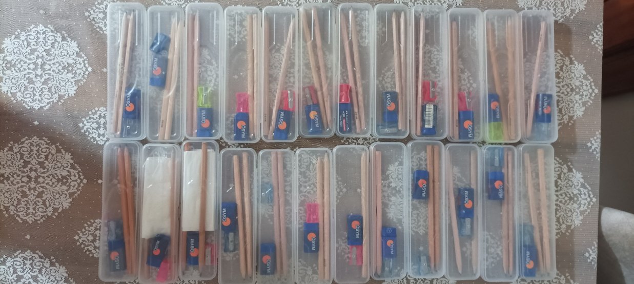 sadece sınavda kullanılmış içerik*(kalem kutusu+2 siyah kurşun kalem+1 kalemtıraş+1 silgi ) ne kadar istiyorsanız ilan açarım