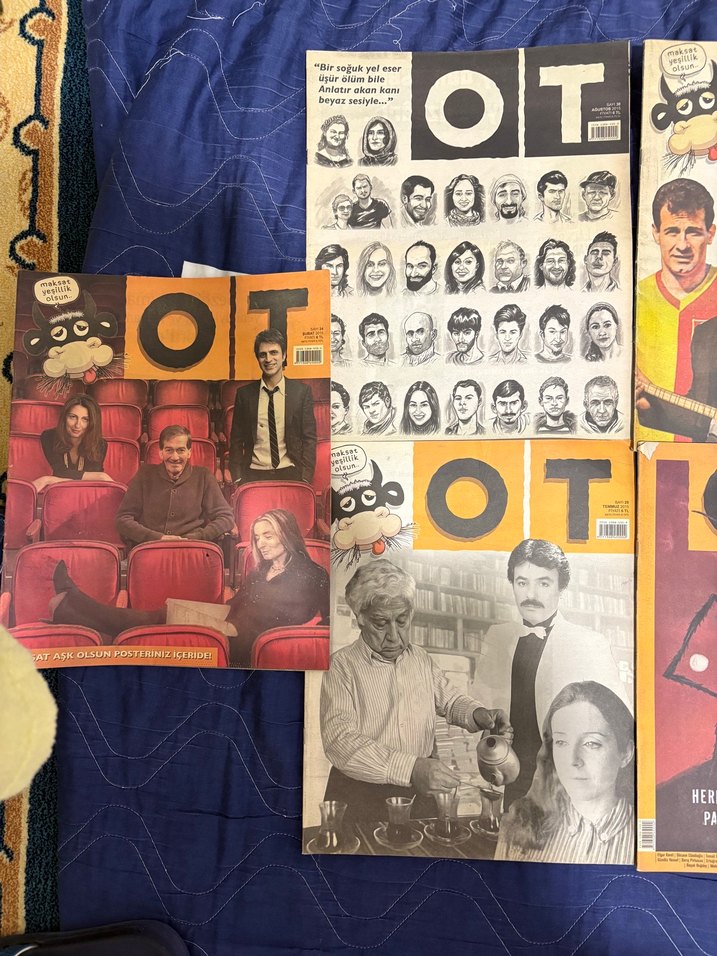 Farklı kapak tasarımlarına ve illüstrasyonlara sahip OT dergisi sayıları. şubat, temmuz, ağustos, eylül 2015 kasım, aralık 2016