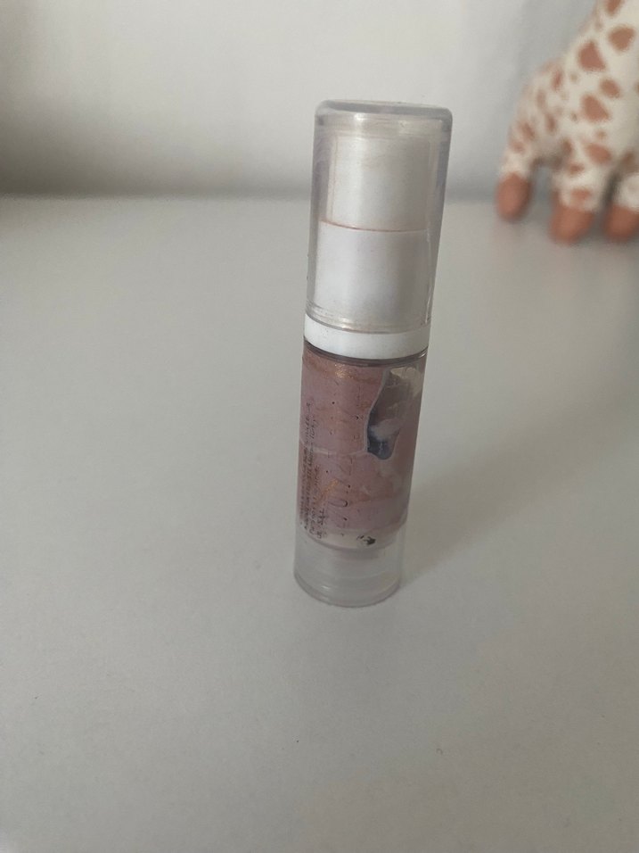 Şeffaf pompalı şişede bej tonlu ışıltılı BB krem