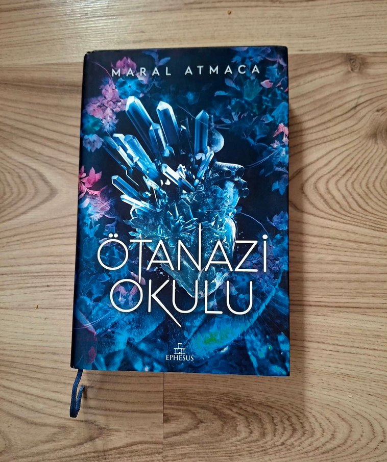 Maral Atmaca'nın "Ötanazi Okulu" adlı romanı, kristal benzeri detaylarla gizemli bir kapak tasarımına sahip. Ephesus yayınevi tarafından basılmıştır. hiç bir kusuru yoktur