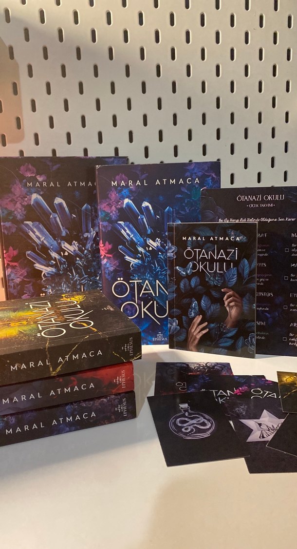 ilk kitap kutulu set.Diğerleri ciltsiz.İlk kitabın posteri de var.