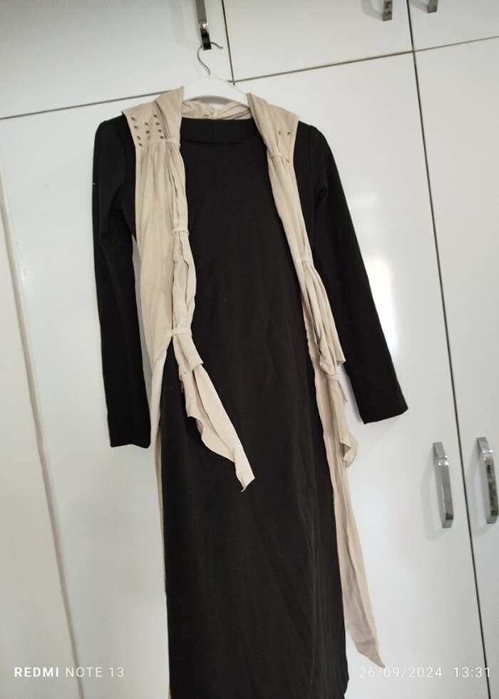 İçi elbise üzerinde etnik yelek var