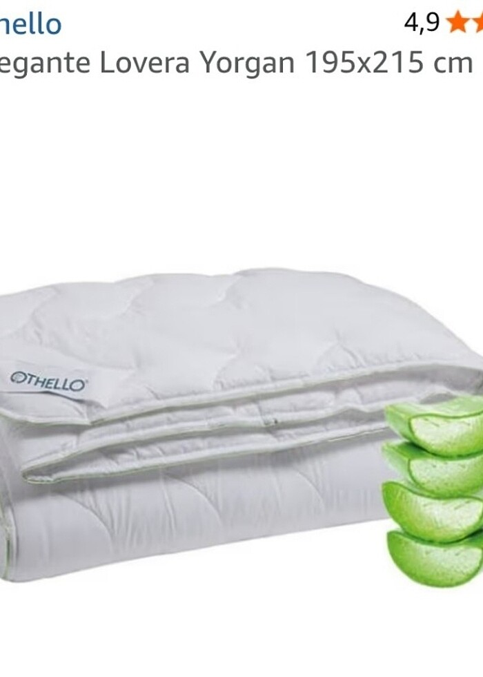 Lovera yorgan 400 gr/m² 0 HCS virgin elyaf dolgusu, aloe veralı optik beyaz göz alıcı yumuşak mikro kumaşı, şık kapitone deseni ve açık yeşil ayrıştırıcı saten biyesi ile albenisi yüksek bir üründür 5 üzerinden 4 ısıtma derecesine sahip sıcak bir üründür Yumuşak, dolgun ve sıcak yorgan isteyenler için idealdır