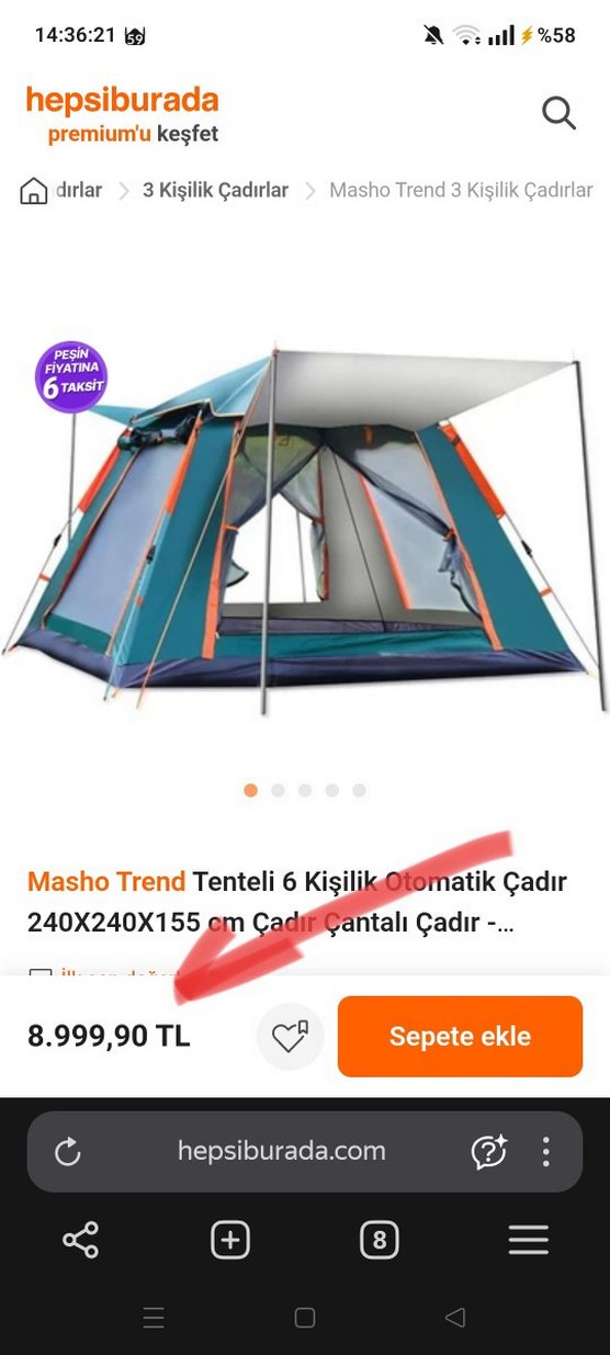 240x240x160 cm ölçülerinde, 6 kişilik, Otomatik, sineklili, tenteli, çantalı. Sadece kontrol amaçlı 2 defa evde kurulmuştur. Güncel fiyatı görseldedir.