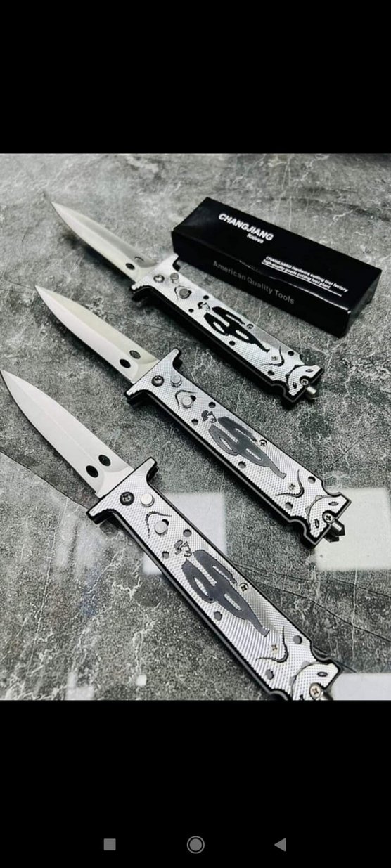 ✅ Çakı bıçak otomatik Düğmeli Yandan açılır ✅ Charlie chaplin Gümüş renk desenli ✅Komple metal çelik keskin ✅ ağır malzeme kaliteli orjinal Ürün ✅ ✅Manüel uzunluk 22 cm ,✅ sıfır ürün